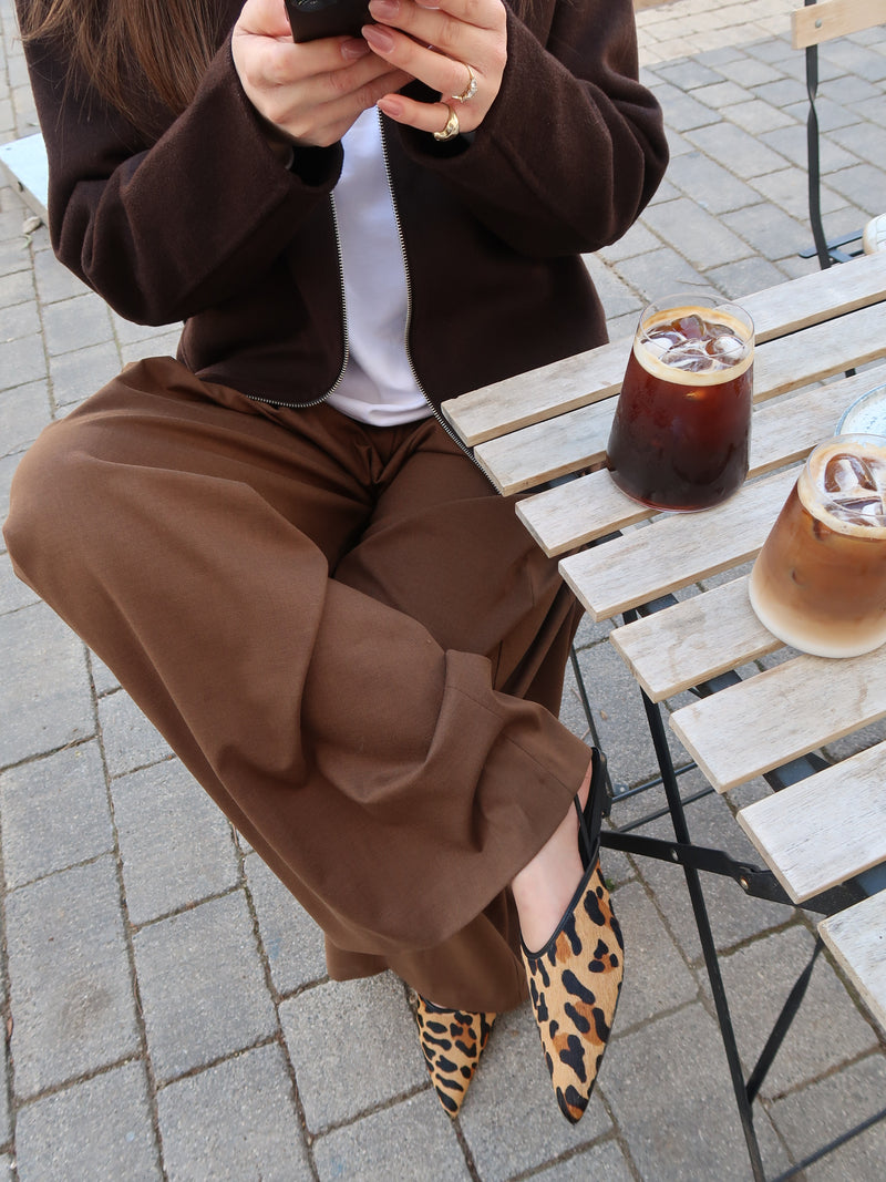 נעלי סירה מחודדות מעור בהדפס מנומר על בסיס פוני עם רצועת עקב דקה. עקב קיטן קטן ונשי המראה משלב בין צורת החזית האלגנטית לבין פרינט חייתי נועז