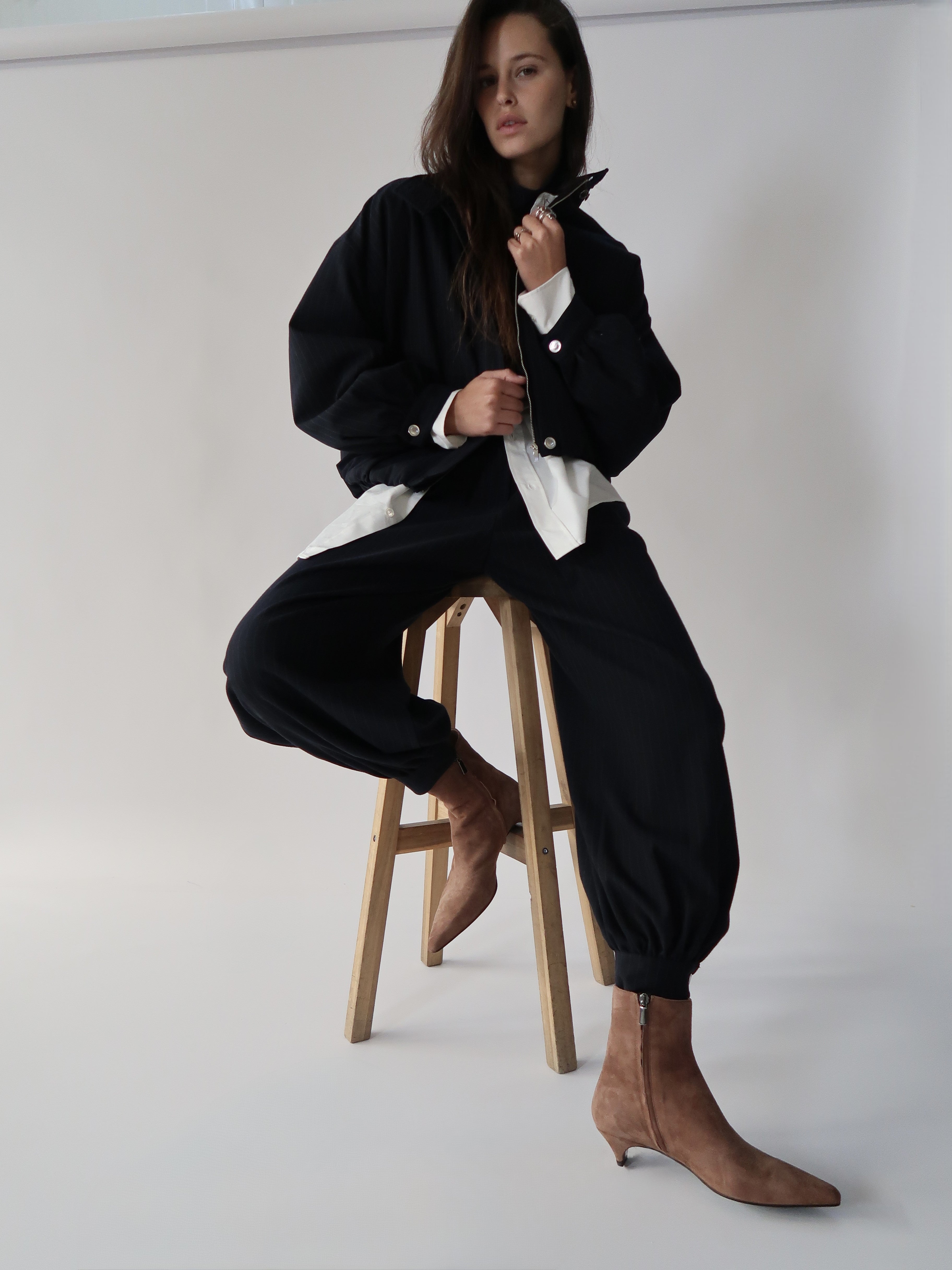 מגפונים קצרים מעור נובוק בגוון חום קפה, בגזרה מחודדת וצמודה לרגל. רוכסן צידי, ועקב קיטן נשי המוסיף יציבות ונוחות. העיצוב הקלאסי פוגש נוחות מושלמת – השוז שתרצי לנעול כל העונה.