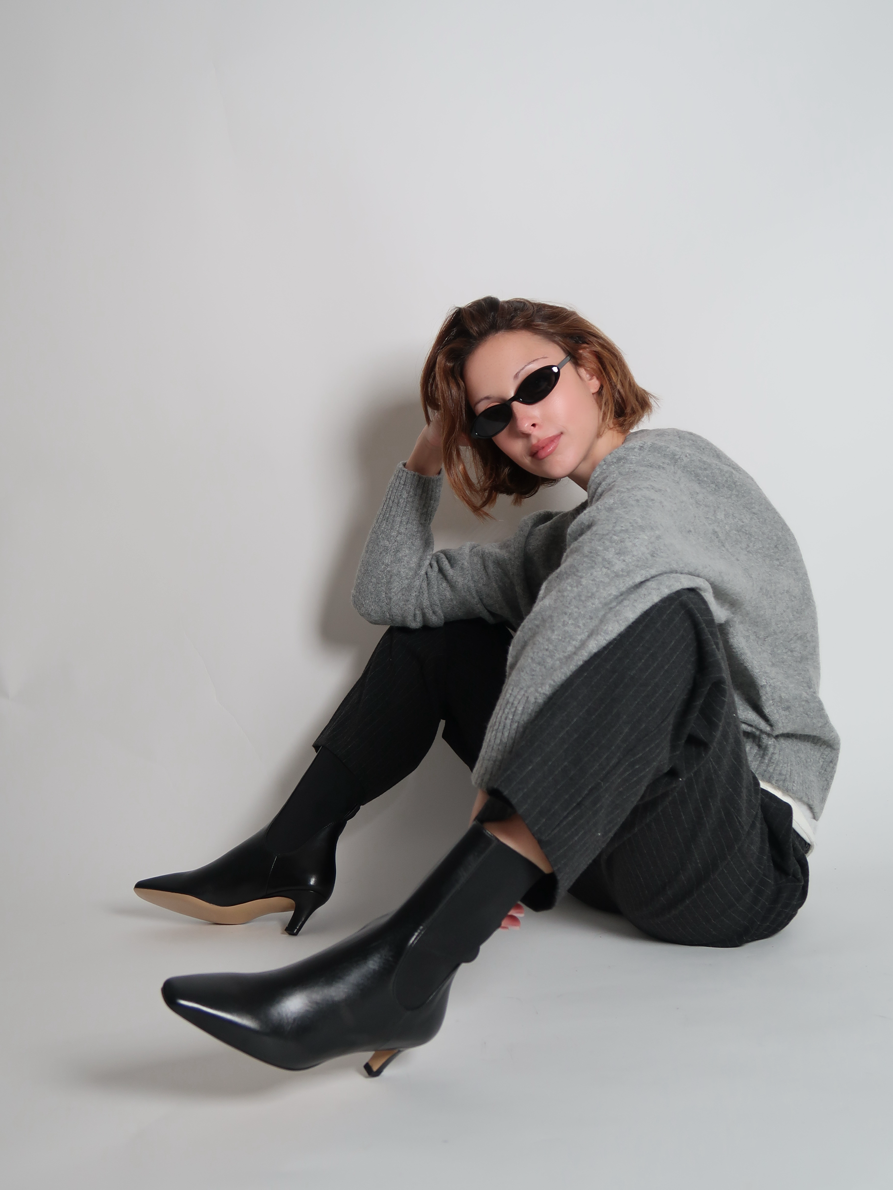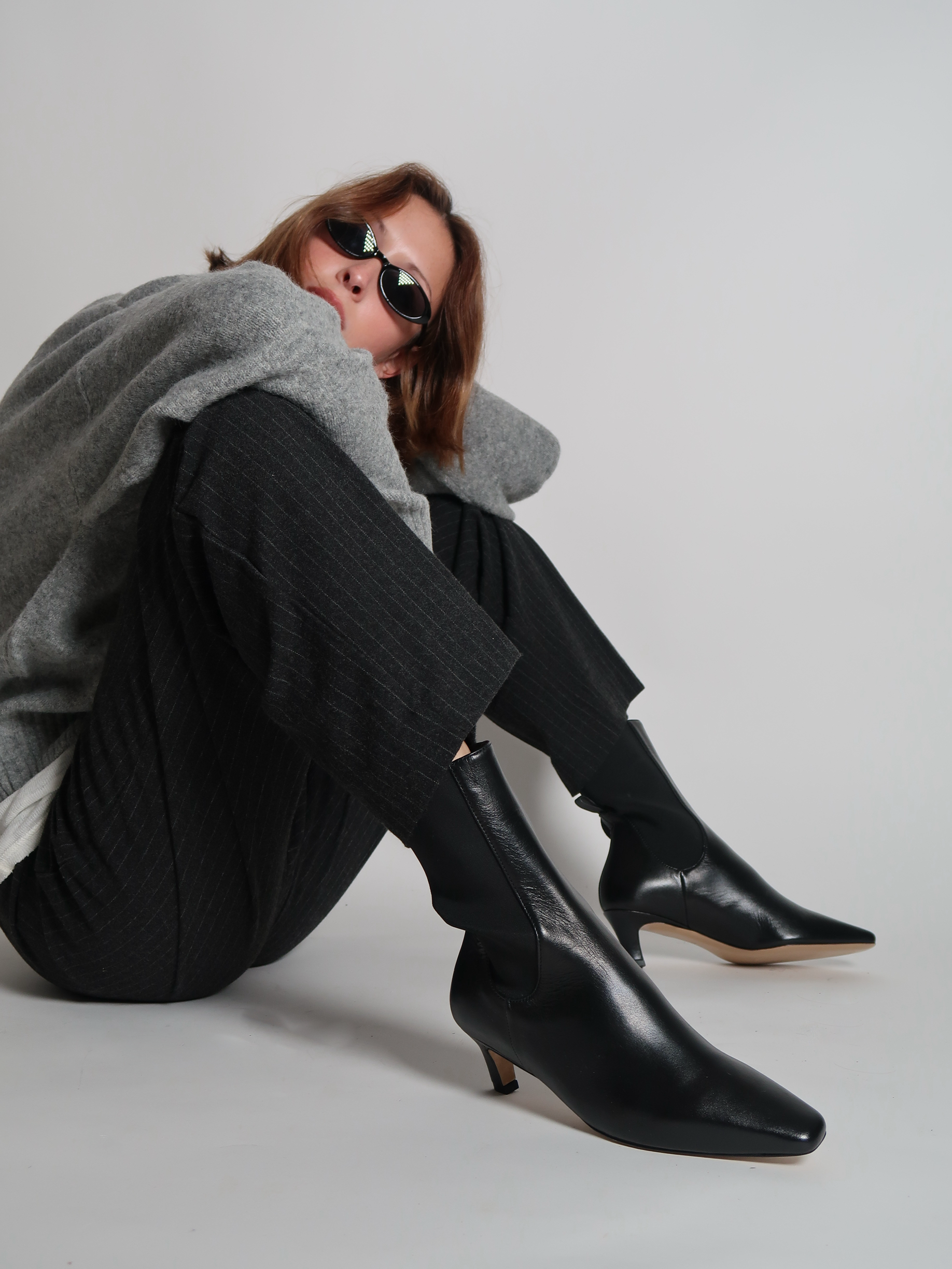 מגפוני עור בצבע שחור, עם גומי אלסטי צדדי בצבע שחור שמעניק גמישות ונוחות בכל צעד. עקב מדויק וחזית מעודנת מאזנים בין קלאסיות לנינוחות, וקו מוארך ואלגנטי. זוג שכולו תחכום שקט ונוחות מחמיאה שנשארת לאורך כל היום.