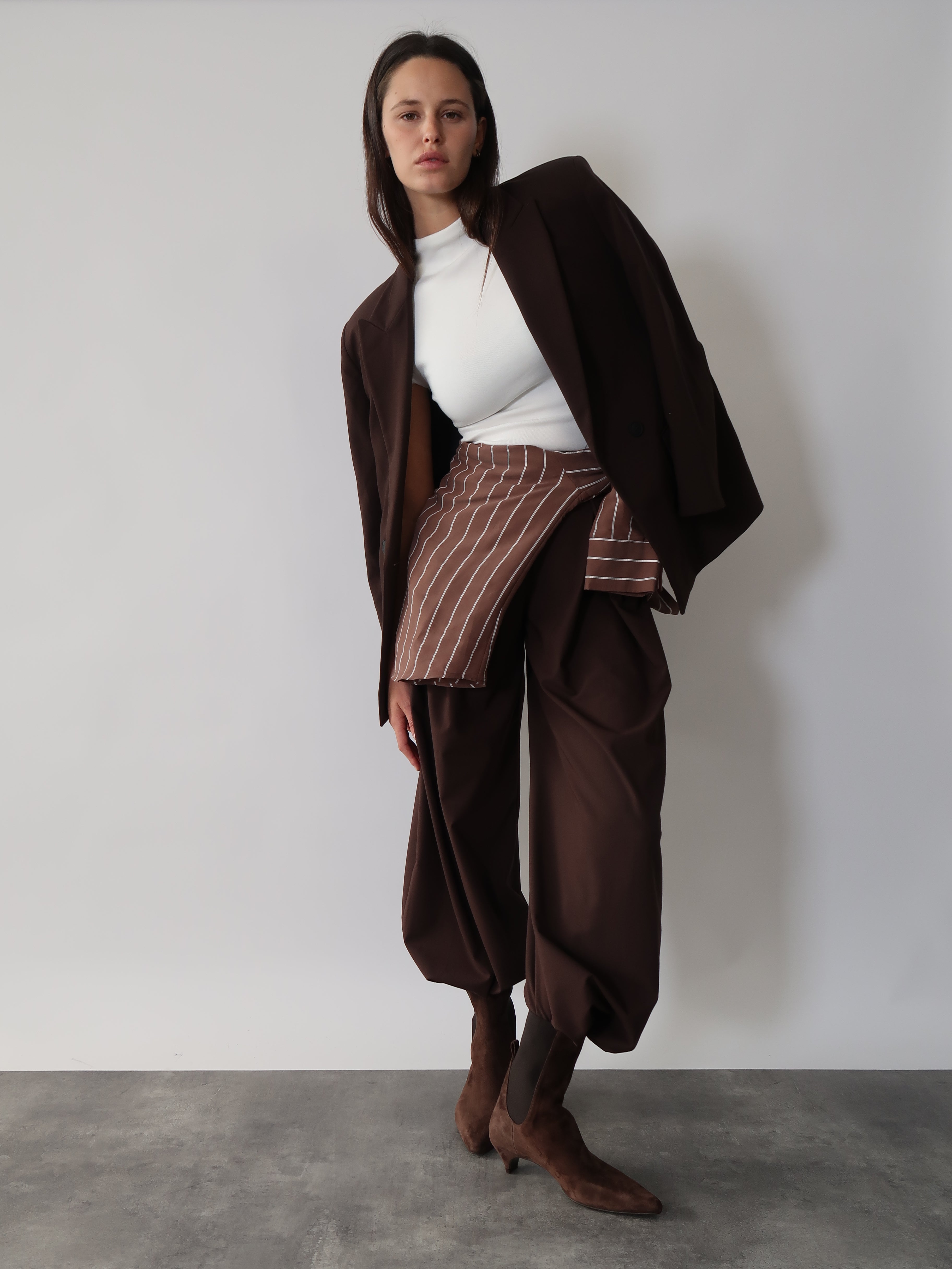 מגפוני עור בצבע חום כהה בגזרת צ'לסי עם גומי אלסטי צדדי בצבע תואם שמעניק גמישות ונוחות בכל צעד. עקב קיטן נשי ומדויק וחזית מעודנת מאזנים בין קלאסיות לנינוחות, ויוצרת קו מוארך ואלגנטי.