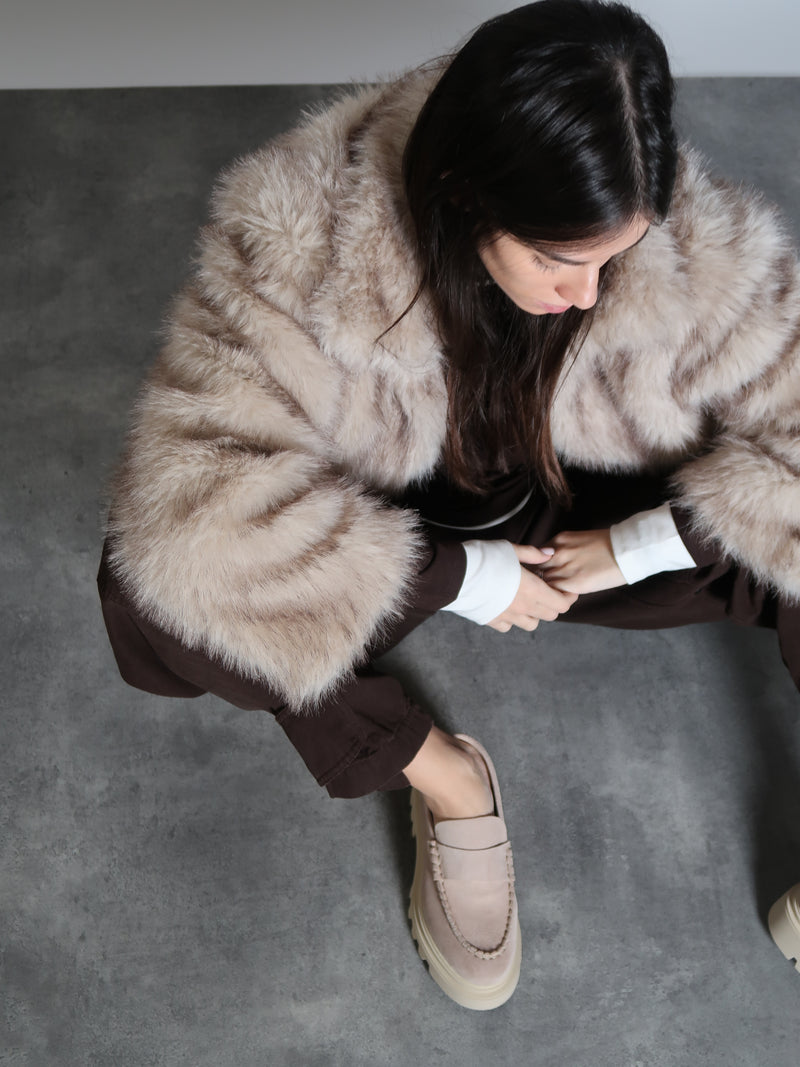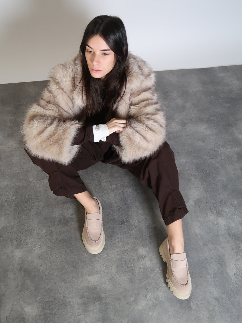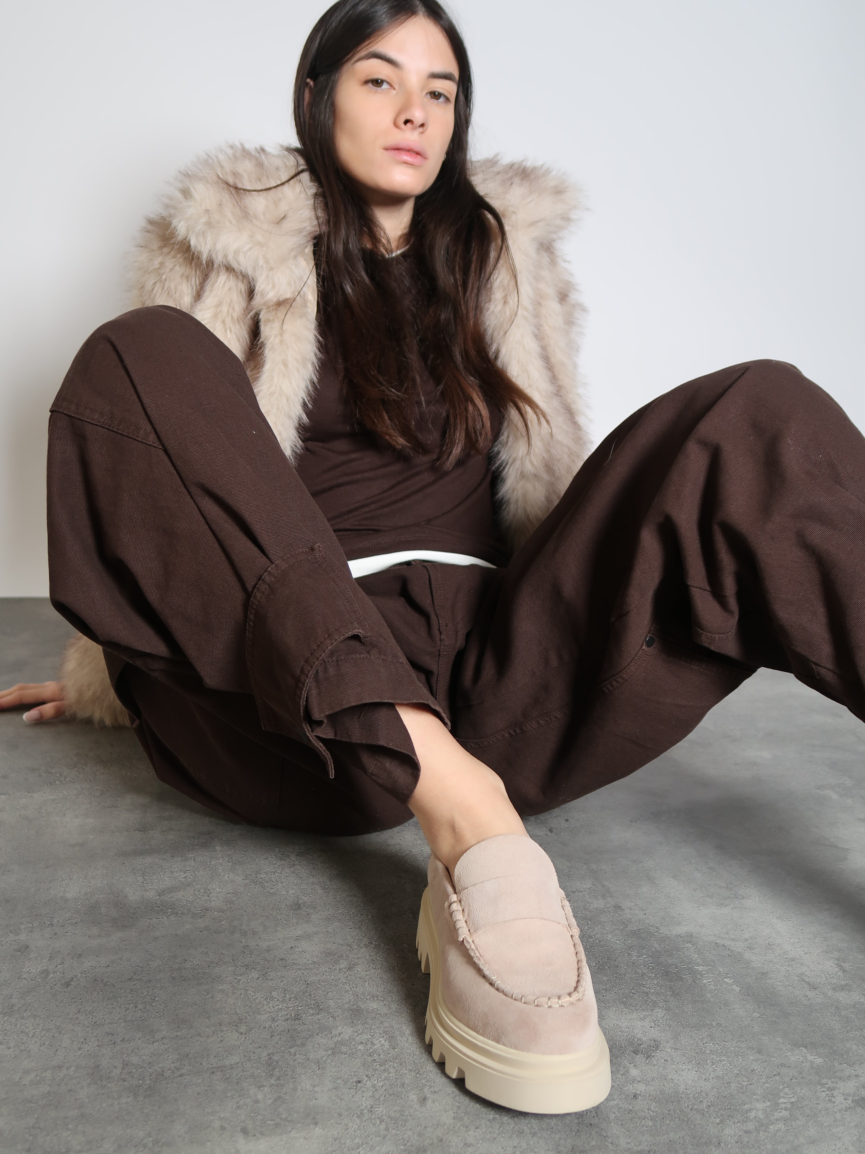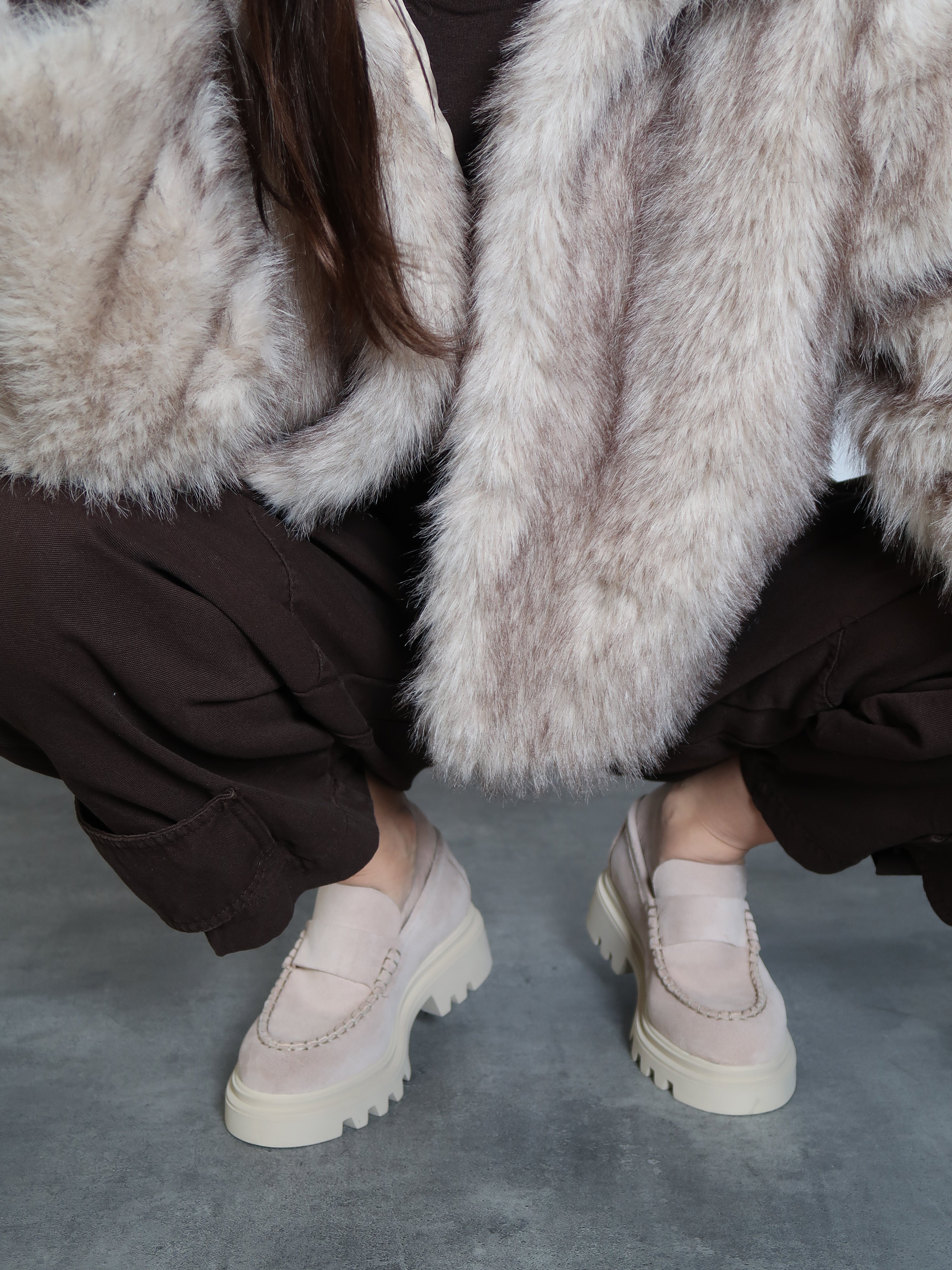 נעלי אוקספורד פלטפורמה מזמש בצבע בז' פודרה, תיפורים עדינים ומוקפדים, סוליה בצבע תואם בסגנון טרקטור מוגבהת ונוחה. דגם שיתן טוויסט לכל לוק שתבחרי!