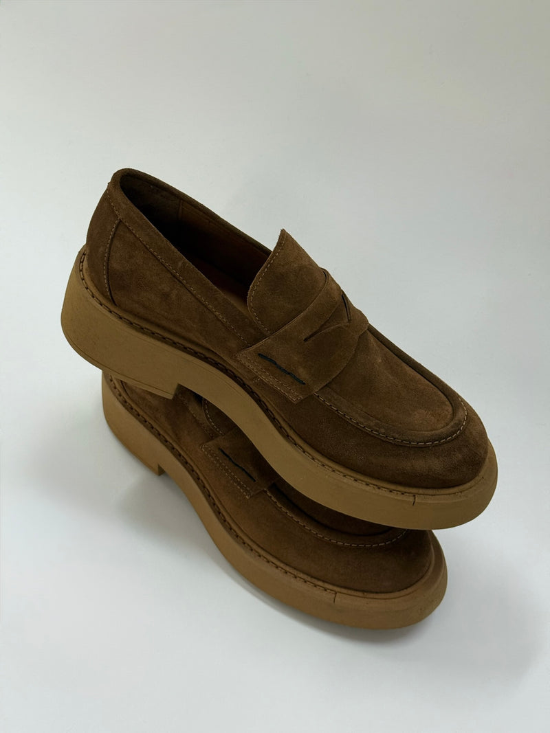 נעלי אוקספורד פלטפורמה עשויות זמש איכותי בצבע חום עם סוליה מוגבהת ונוחה בצבע בז' בהיר שמעניקה נוכחות ואופי. בדיוק הזוג שמושך מחמאות – משילוב מושלם בין אלגנטיות מודרנית לקז'ואל יומיומי.