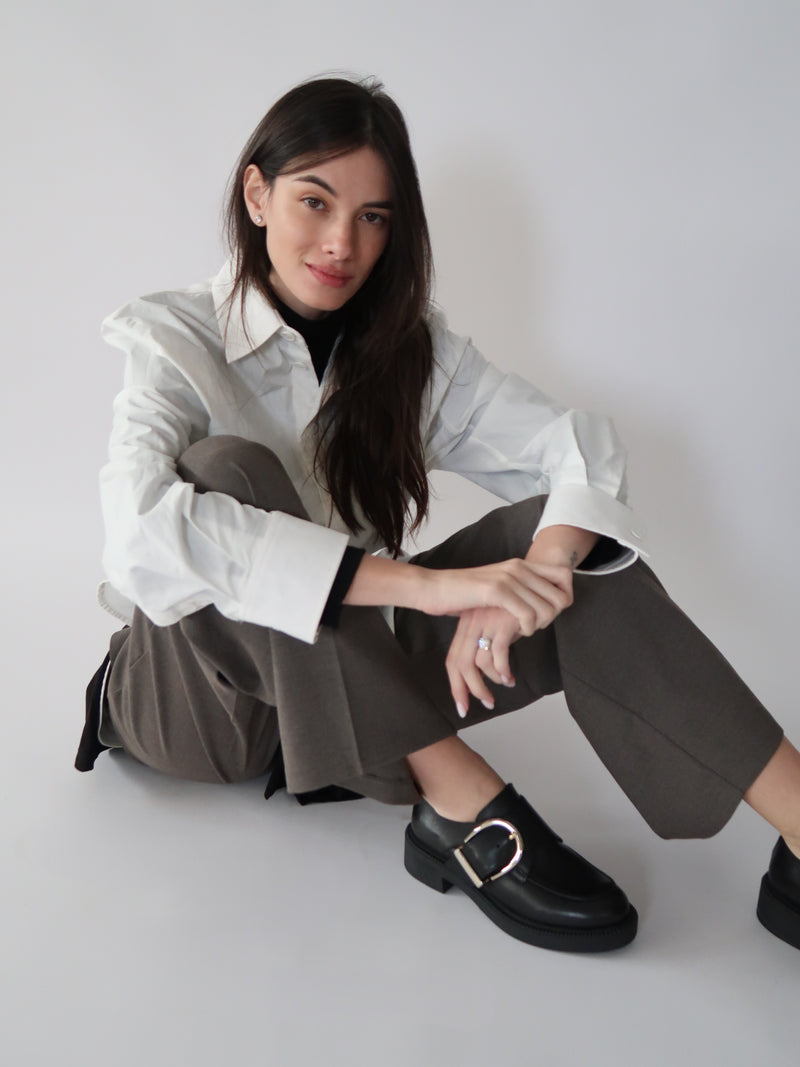 אוקספורד צ’אנקיות מעור שחור, עם סוליה יציבה ואבזם אוברסייז מתכתי שנותן אמירה ברורה.