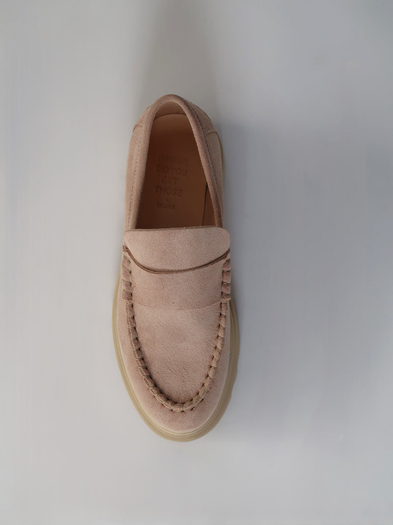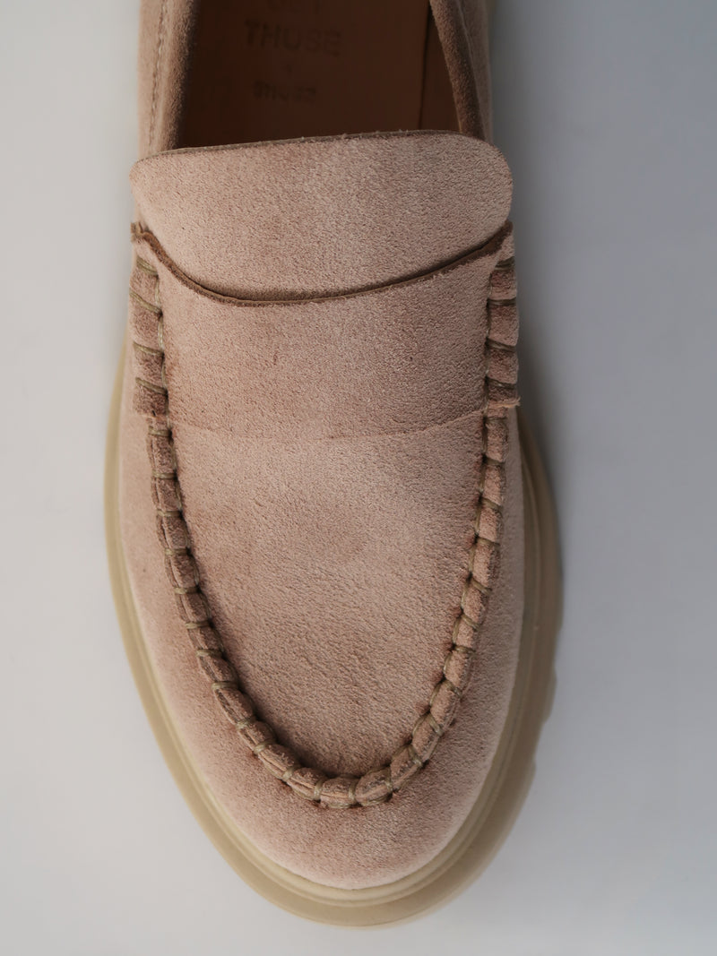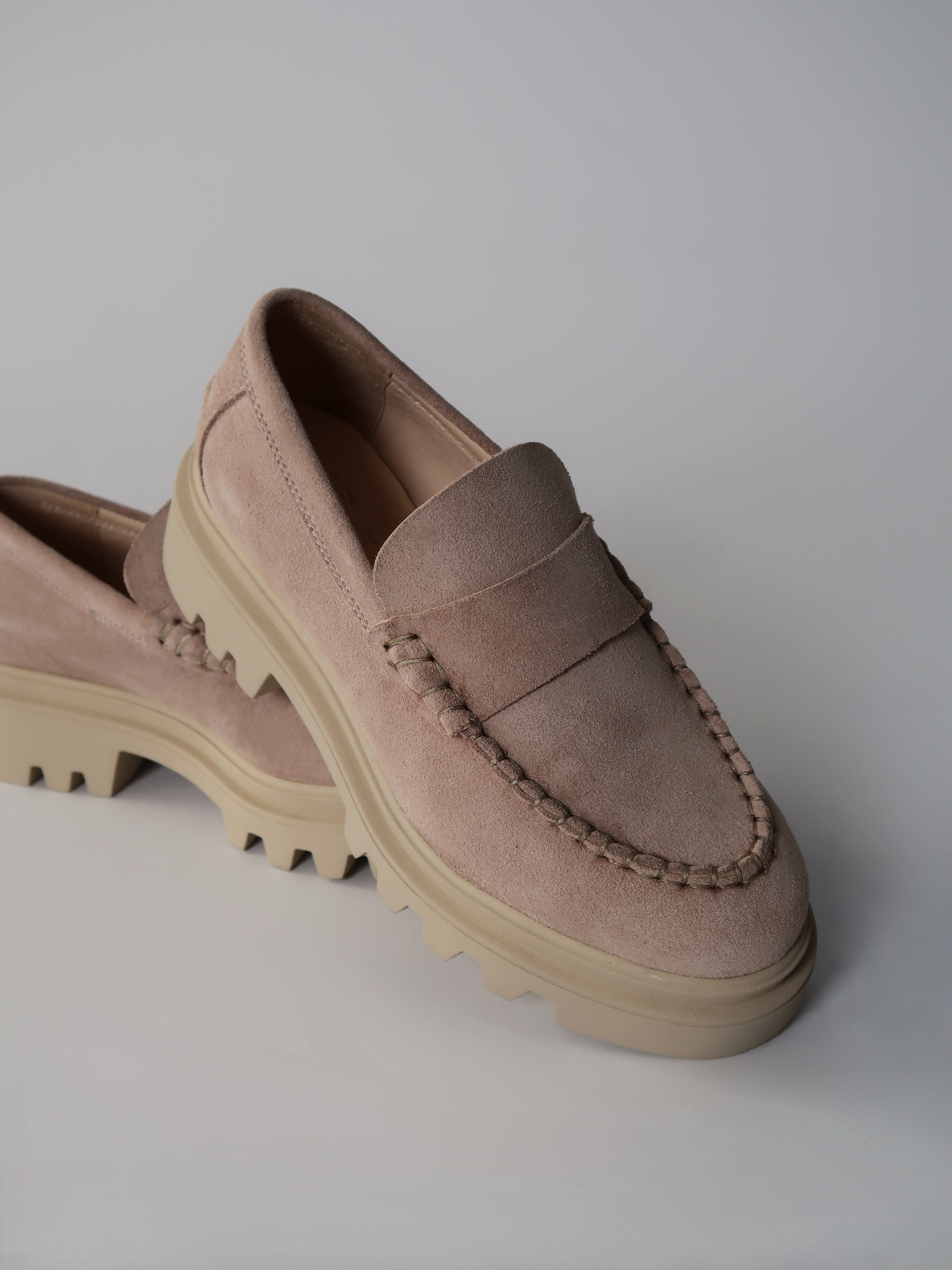 נעלי אוקספורד פלטפורמה מזמש בצבע בז' פודרה, תיפורים עדינים ומוקפדים, סוליה בצבע תואם בסגנון טרקטור מוגבהת ונוחה. דגם שיתן טוויסט לכל לוק שתבחרי!