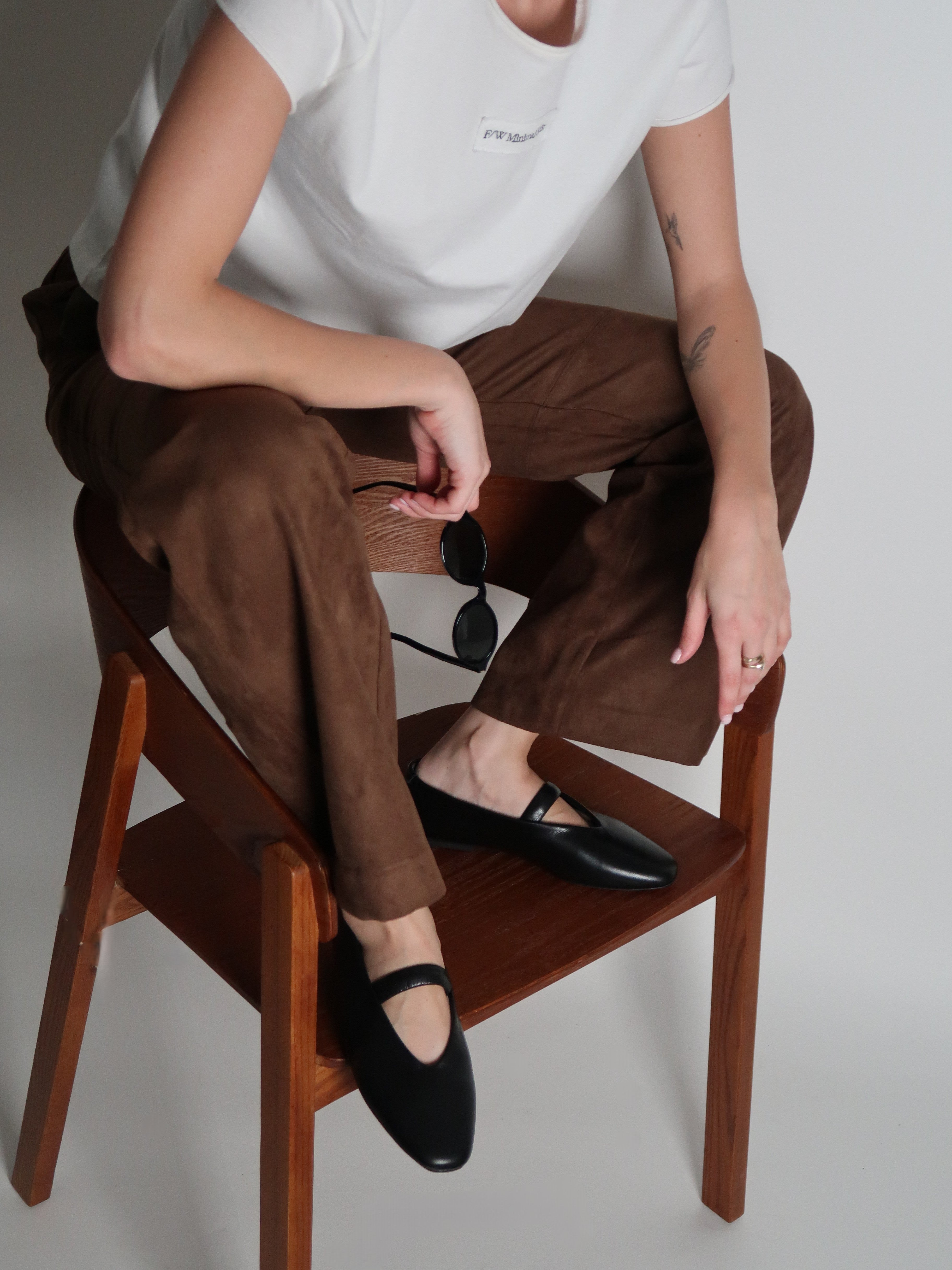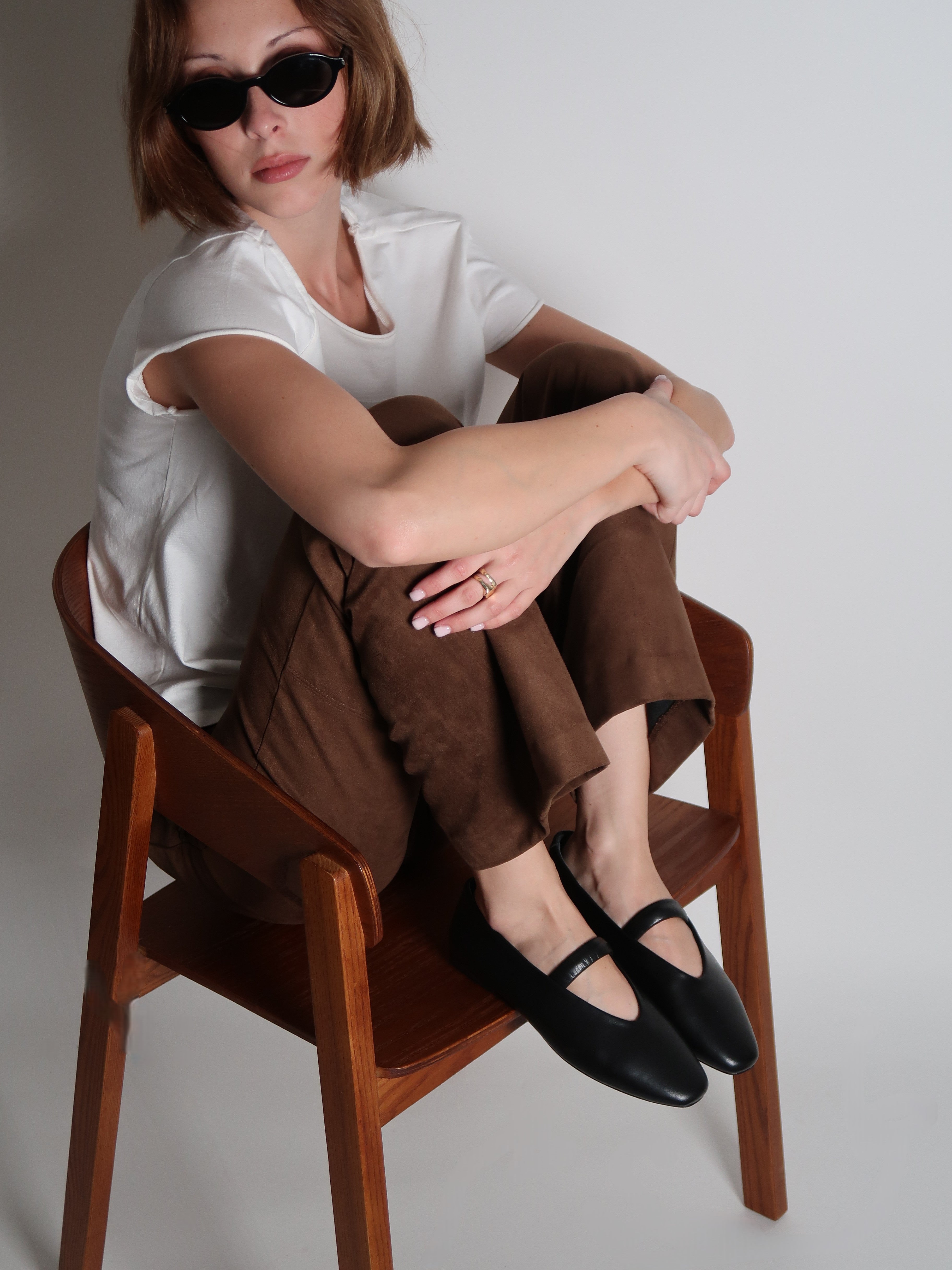 נעלי בובה מעור רך בצבע שחור, בעיצוב נקי עם גימור רך ונעים למגע. הגזרה הרכה והעגולה מחמיאה לכף הרגל, והגומי העליון מוסיף נוחות והתאמה מושלמת. קלילות, אלגנטיות ונוחות – בדיוק כמו שצריך ליום־יום