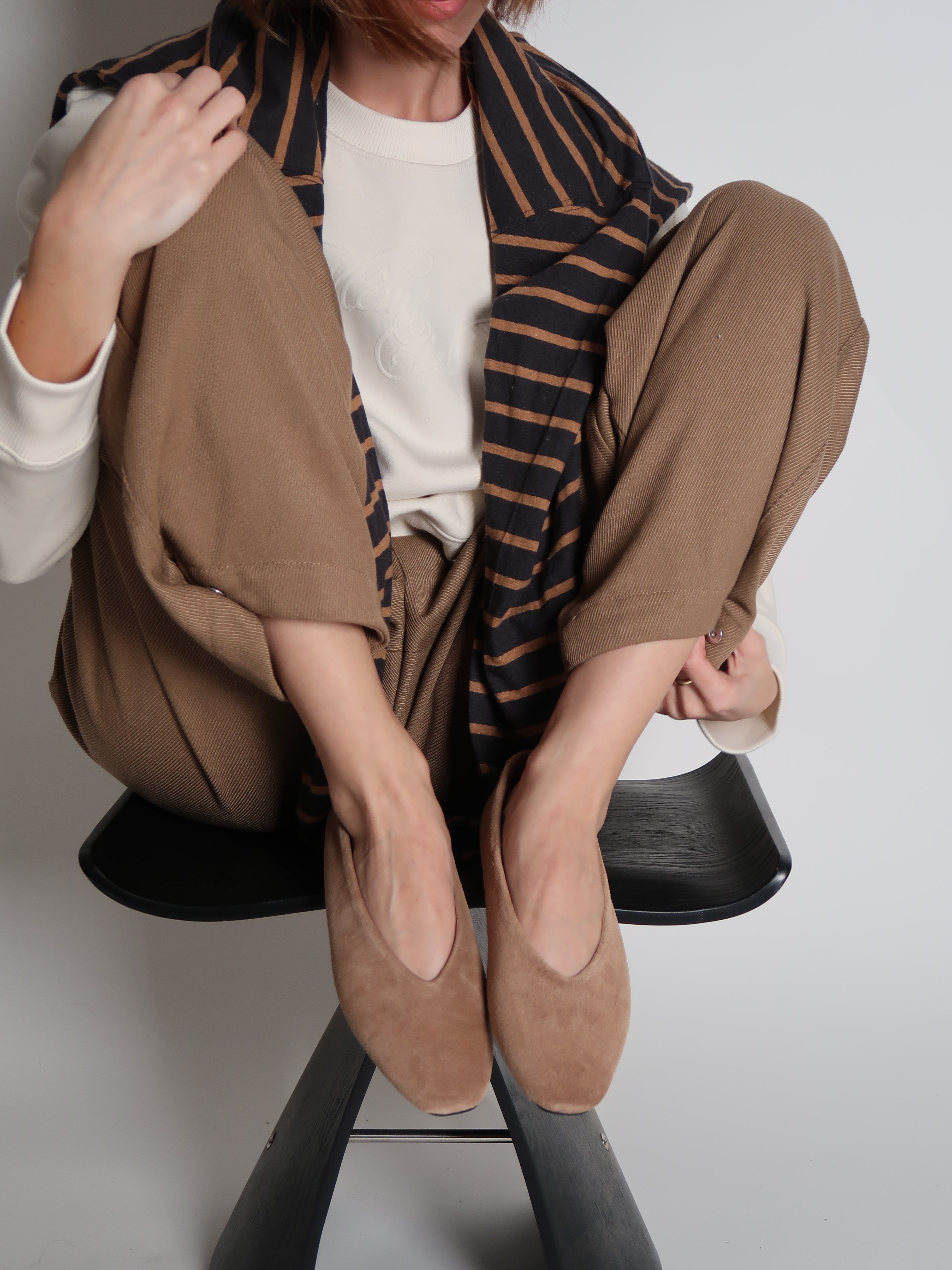 נעלי סירה מזמש רך בגוון קאמל חמים, בעיצוב מינימליסטי ואלגנטי. הגזרה הרכה מחבקת את כף הרגל ומעניקה מראה נקי ונשי, מושלם ליום עבודה, בילוי בעיר או כל רגע שדורש שילוב של נוחות וסטייל.