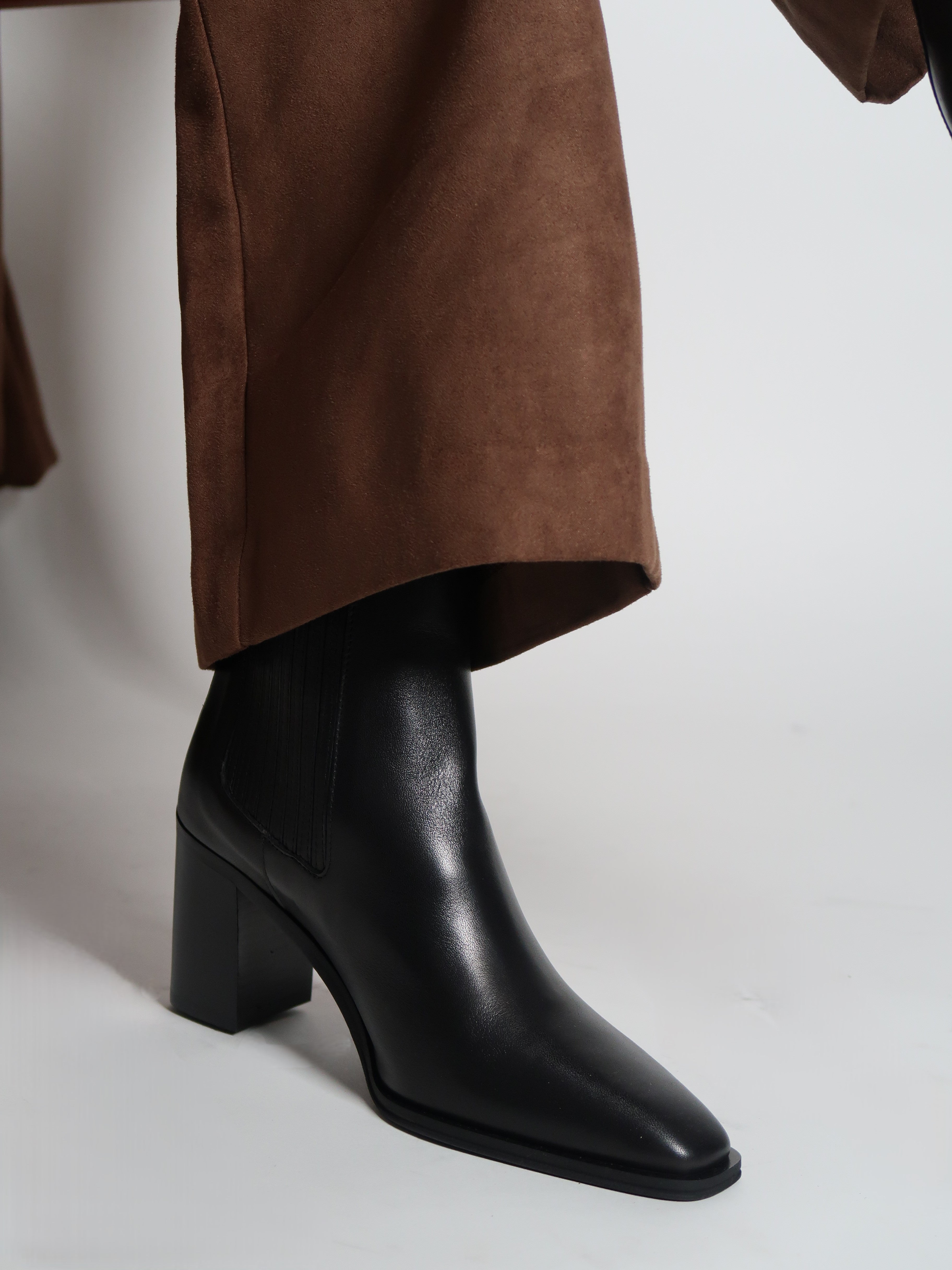 מגפונים קלאסיים מעור שחור חלק עם גזרה צמודה ואלסטית בצד לנעילה קלה ונוחות מירבית.
