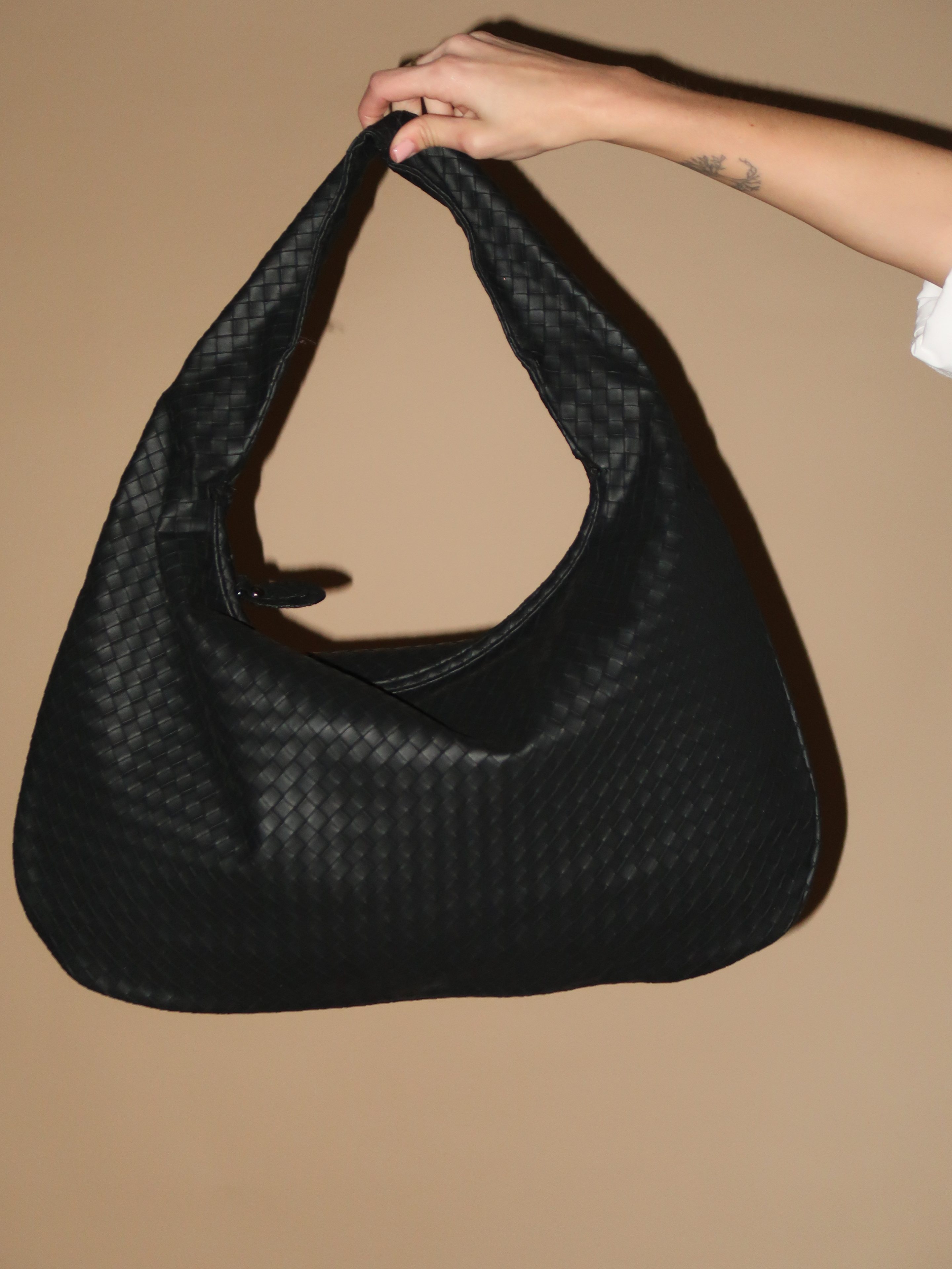תיק צד גדול שחור קלוע