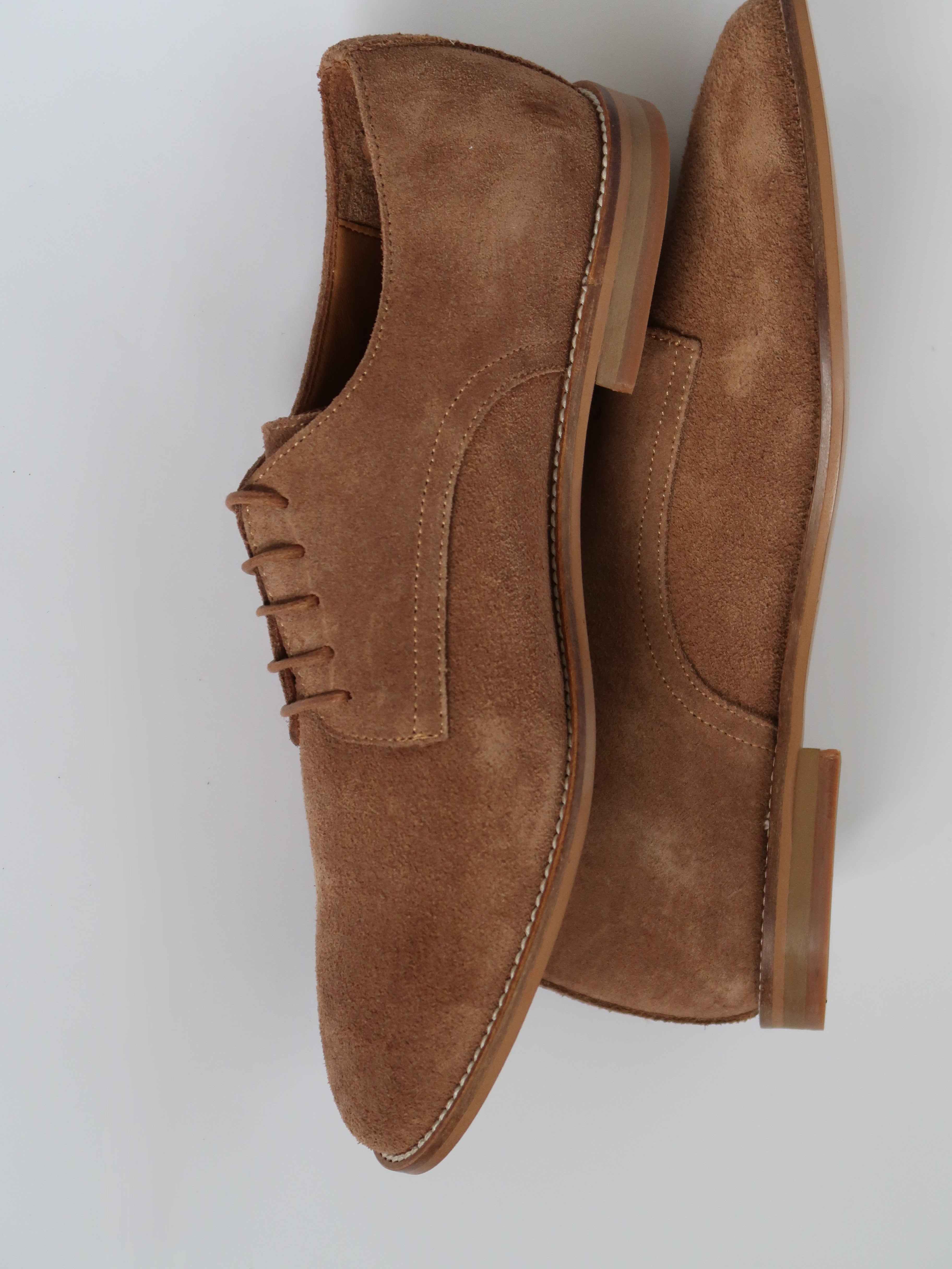 נעלי אוקספורד מזמש בגוון קאמל, בעיצוב נקי עם שרוכים דקים וגימור רך ונעים למגע. הסוליה השטוחה מעניקה נוחות לאורך כל היום, והסגנון האלגנטי־יומיומי שלהן משתלב בקלות עם כל לוק - משמלה קלילה ועד ג’ינס קלאסי.